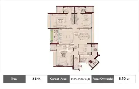 Carpet Area : 1516 Sq Ft