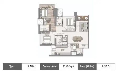 Carpet Area : 1140 Sq Ft