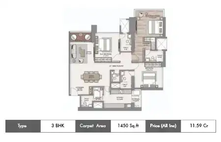 Carpet Area : 1450 Sq Ft