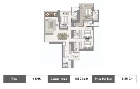 Carpet Area : 1850 Sq Ft