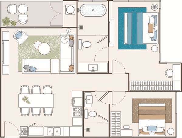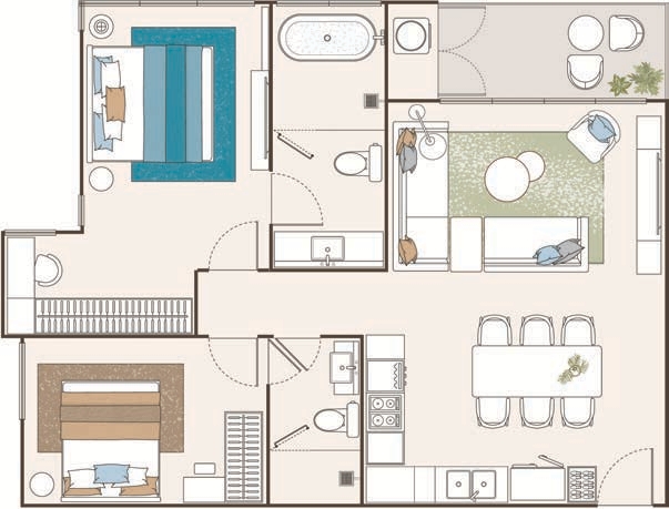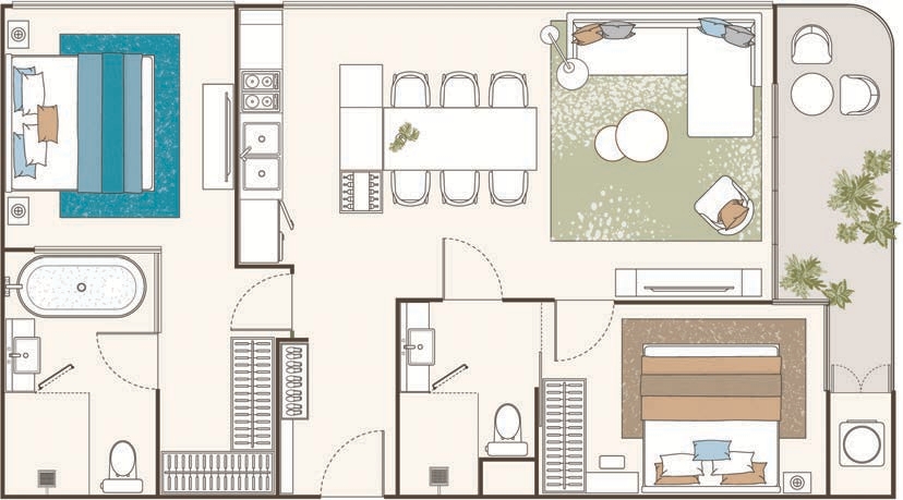 Premium digital door locks integrated with the property management system add a layer of smart security and convenience. Thoughtfully planned master switches and integrated USB charging ports simplify everyday routines.