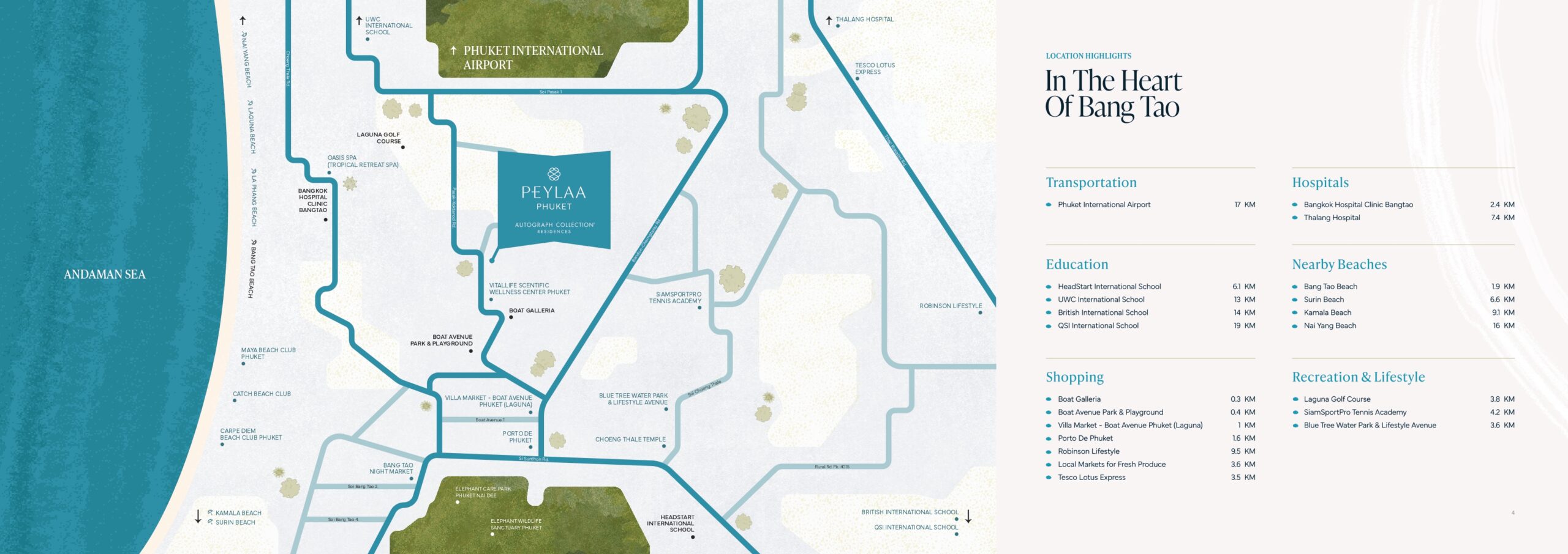 PEYLAA Phuket, Autograph Collection Residences is ideally located on Pasak-Koktanod Road in Tambon Choeng Thale, Thalang District, Phuket. The development is in close proximity to the vibrant and popular Bang Tao Beach, offering residents easy access to Phuket’s world-renowned beaches, high-end dining, shopping centers, and various leisure activities.